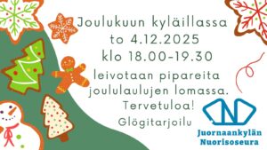 Joulukuun kyläilta Milloin 4.12.2025 18:00 - 19:30 Lisää kalenteriisi Download ICS Google Calendar iCalendar Office 365 Outlook Live
